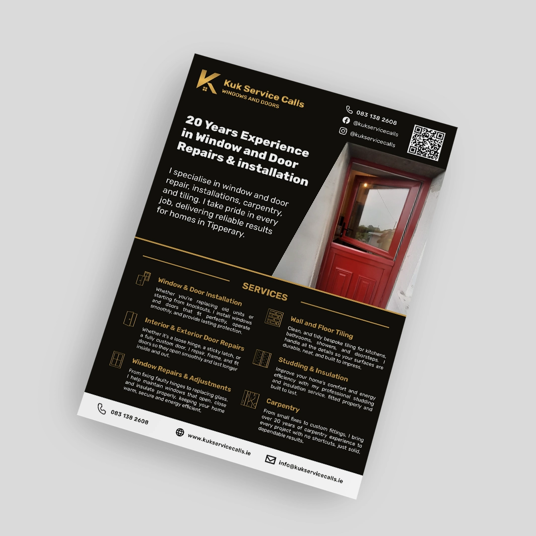 I recently designed the website and identity for Kuk Service Calls: a window and door installation and repair business in Tipperary. The client, Mariusz, wanted a clean, professional platform to promote his work and connect with customers in the local area.